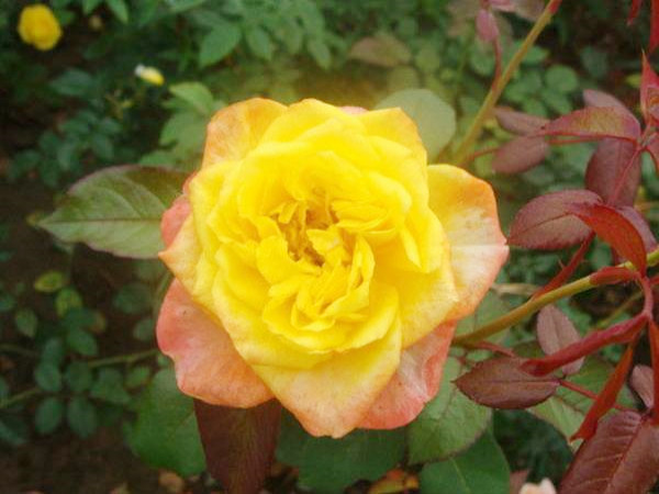 光譜月季開花大,花朵很飽滿,用手摸一摸,手感也不錯,花瓣柔柔的、軟軟的。光譜藤本月季是會變色的一個品種,它的花色是深黃色,被太陽曬了之后,就有了一圈圈紅暈,就像花喝醉了一樣,看起來特別可愛。光譜月季的花朵會在初開花時、以及花快開敗的時候有不同的顏色,所以一顆植株上有時候會有幾種顏色,花朵在初開時通常為黃色,隨著花朵的綻放逐漸出現濃濃的粉色,而常常是一片花瓣漸有雙色,有的甚至是三個顏色,它變換多姿的顏色無論近看還是遠觀都特別漂亮。