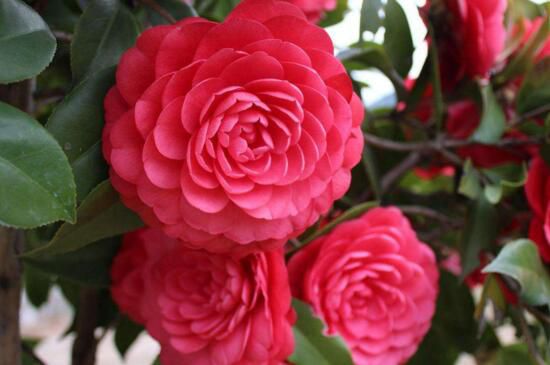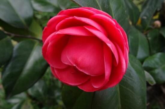 六角大紅山茶花源產(chǎn)地地在浙江松陽(yáng),所以也叫松陽(yáng)紅,花朵碩大且花瓣繁多,花瓣大多呈六角形瓦片狀排列,整個(gè)花朵看起來(lái)層次感很強(qiáng),花色只有大紅色,極其艷麗,花期較長(zhǎng),在12~4月份。