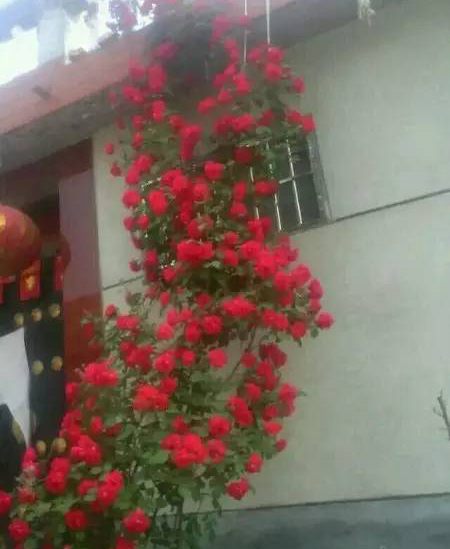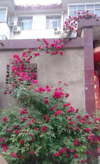 要是我家門口能有這樣一顆藤本月季,過年我春聯都不貼了,夠紅火了!