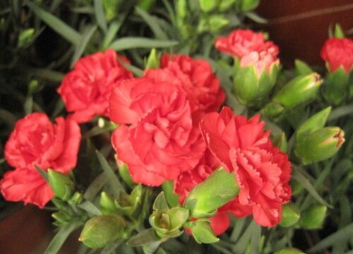 紅色康乃馨是一種草本植物,莖干多叢生,葉片對(duì)生呈禾草狀,花朵單生或者成聚傘花序,顏色為紅色,花瓣呈扇狀,花期在每年的4-9月份。